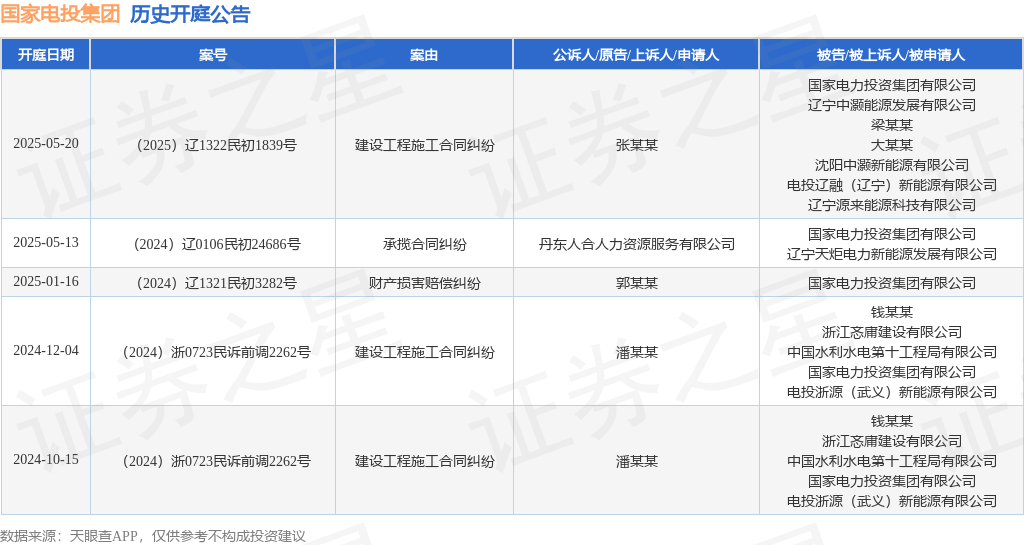 本站消息,根据天眼查APP显示,近日公布了一则国家电力投资集团有限公司作为被告/被上诉人的开庭公告,详细内容如下: